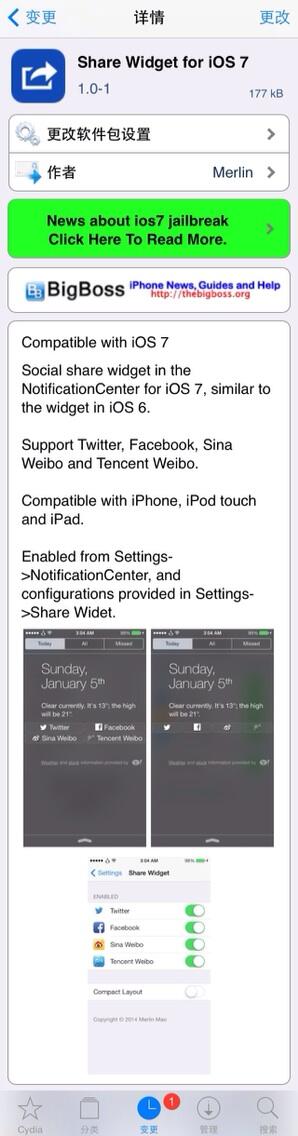 Share Widget for iOS 7 is alive in BigBoss, thanks for