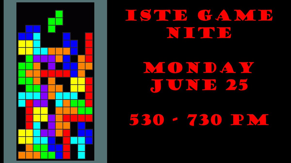 2018 ISTE Games Night: Ready Player One Mon Jun 25, 5:30–7:30 pm Time to network with other educators and play board, card and digital games RSVP https://istegamenite18.eventbrite.com