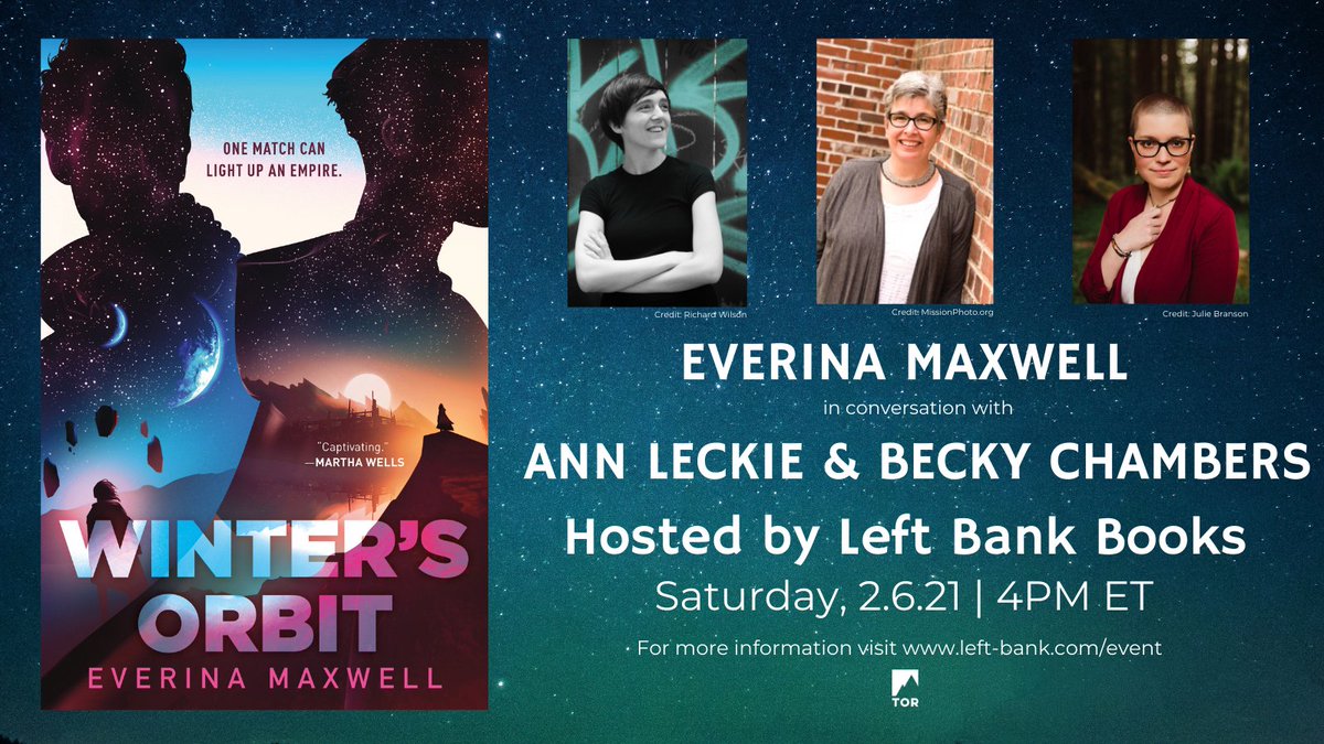 #EventAlert-Join@Av_Stories as she celebrates the release of#WintersOrbit with@ann_leckie and Becky Chambers via@LeftBankBooks! Reserve your spot for 4 PM ET now. https://www.left-bank.com/event/everina-maxwell-winters-orbit …pic.twitter.com/sBjYXSGBF2