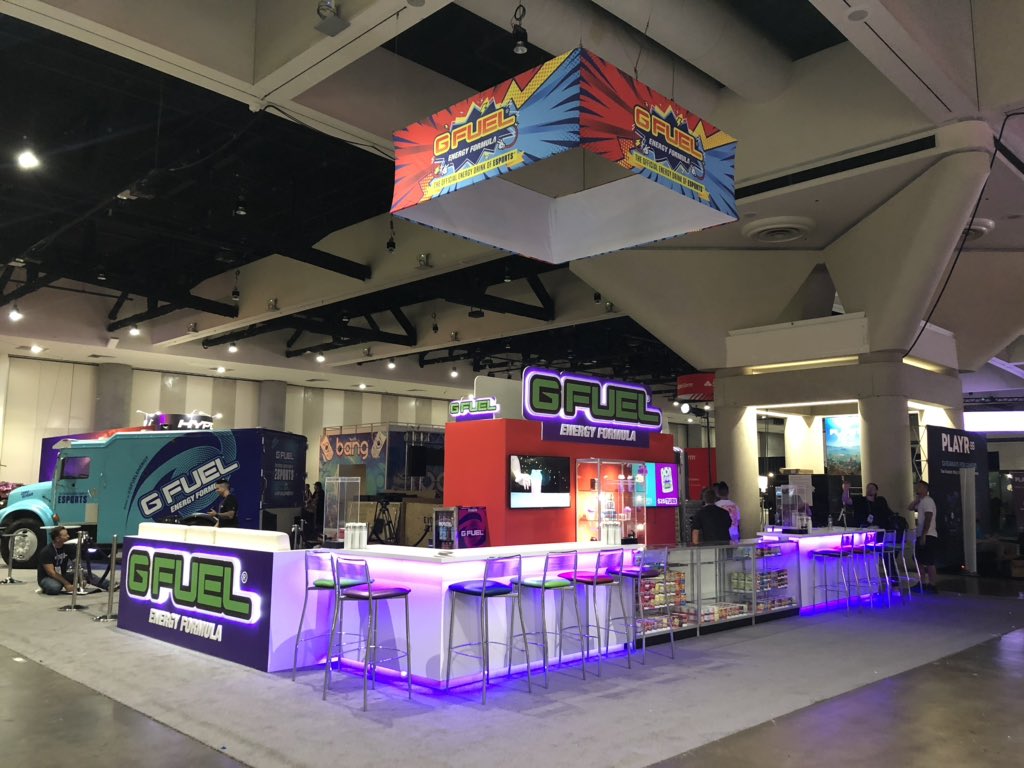 Sneak peak at the greatest booth @ TwitchCon 😊 If you are attending TwitchCon tomorrow, please come to the @GFuelEnergy booth at 11:45 AM for the unveiling of flavor #36 and be a part of our live stream! GFUEL #officialenergydrinkofesportspic.twitter.com/i2cVmPeQJt