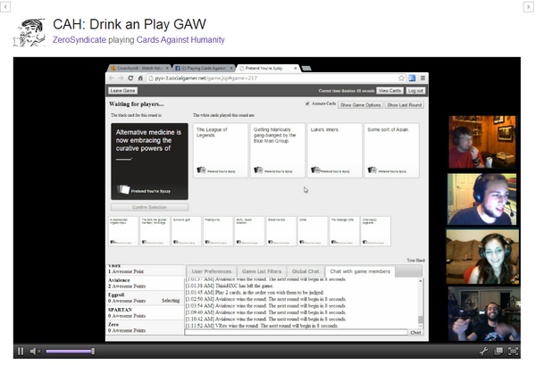 Still up playing #CardsAgainstHumanity, and it's the best thing ever. Come hangout or join the game on Twitch!pic.twitter.com/BiE8I2hrQa