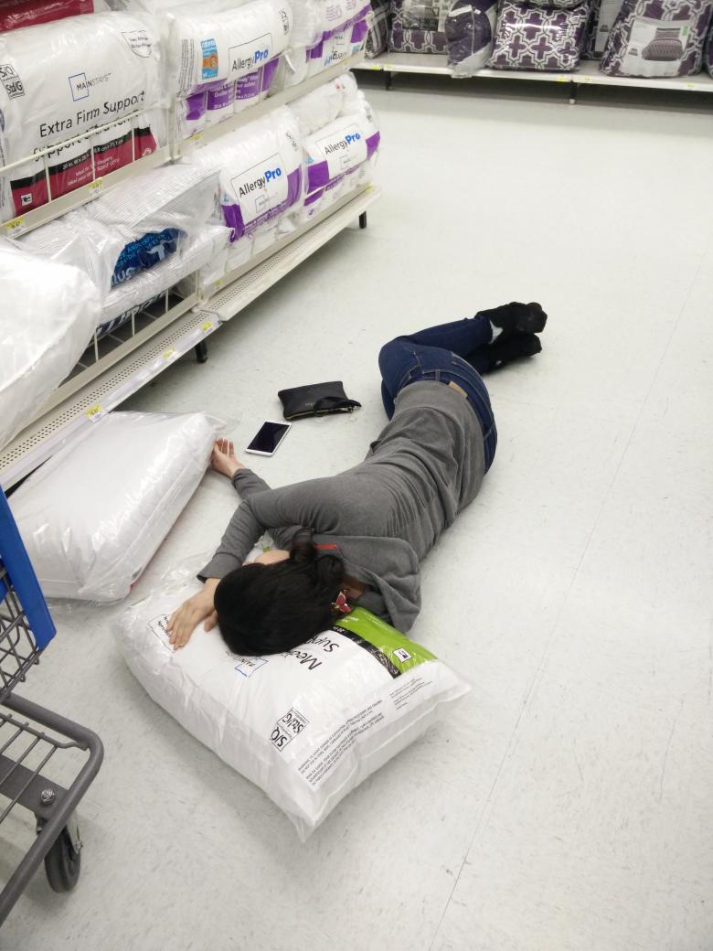 Testing out pillows at Walmart.pic.twitter.com/F88MpuIauu