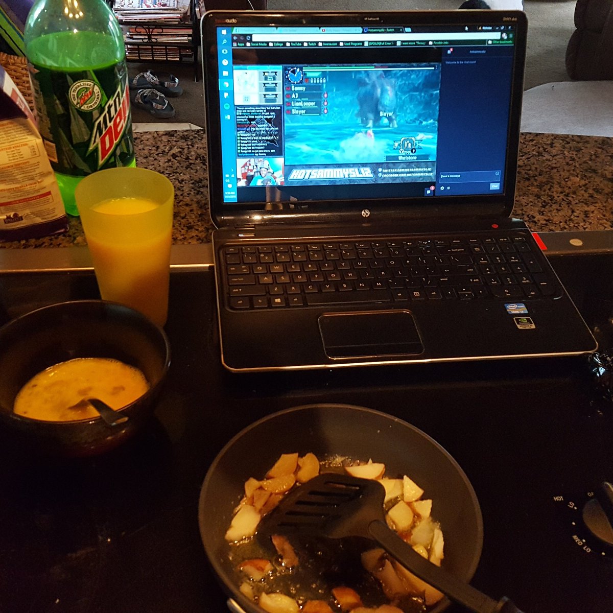 Breakfast and #Twitch from this morning. Shoutout to @Hotsammysliz for the great #MonsterHunter cast!pic.twitter.com/SfXzIv0Rrm