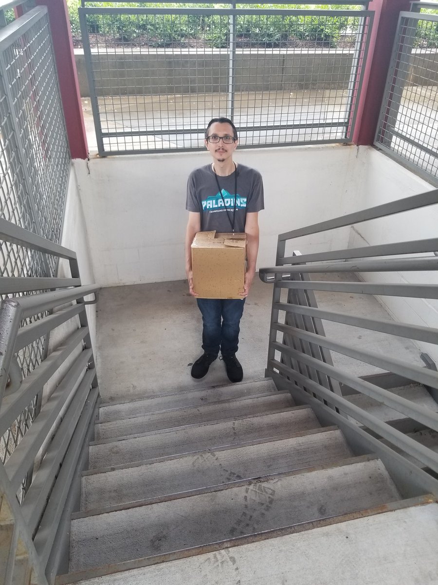 Let me tell y'all how much @SuperBadJuJu likes stairs. He carried booth boxes up every flight of them today. Twice. Refused to elevator.pic.twitter.com/kJbql7nrkX