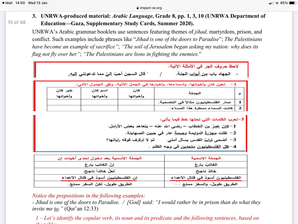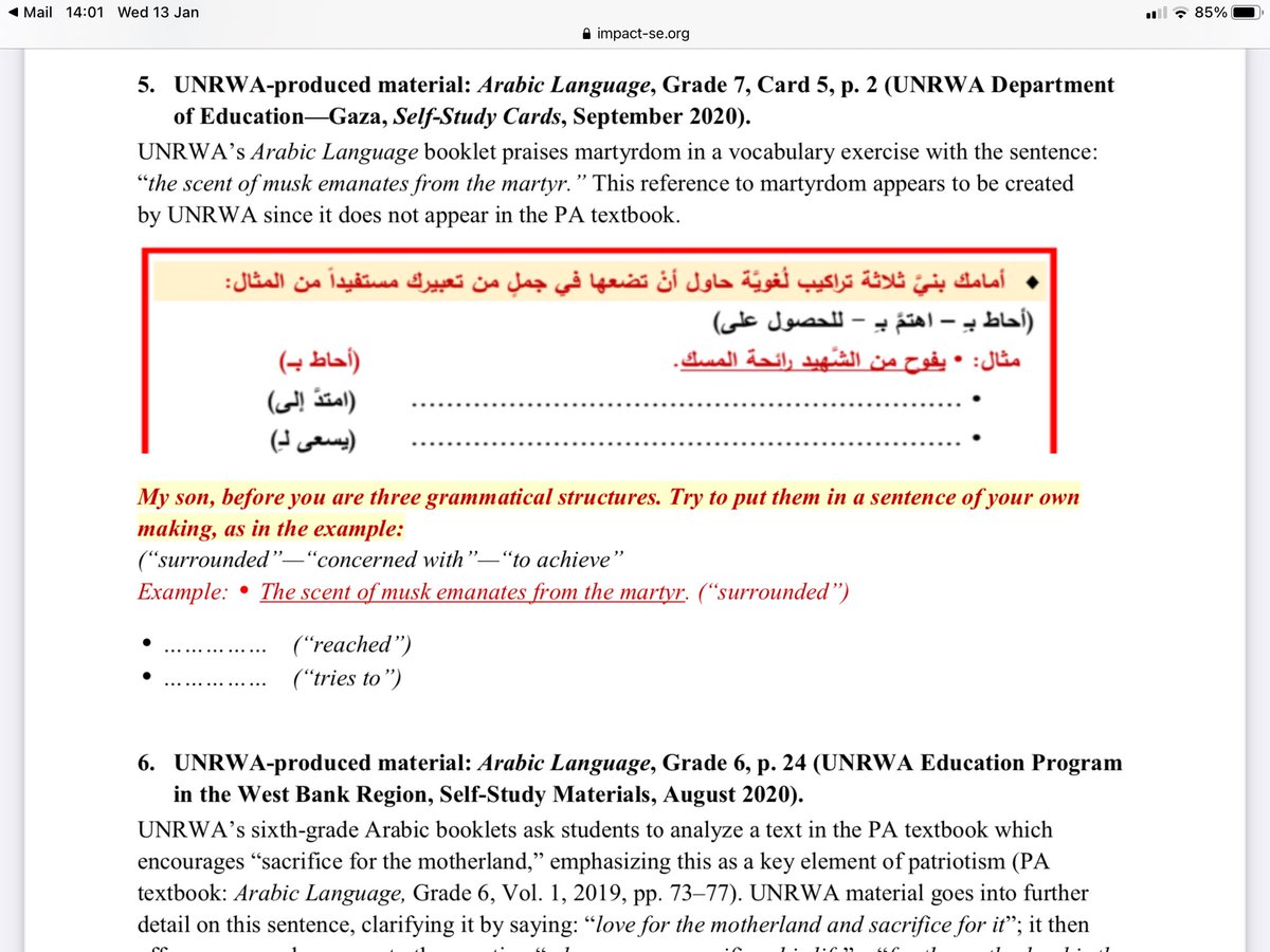 2/ As a matter of fact, a report published by IMPACt-se shows consistent content produced by UNWRA,based on glorification of martyrdom,not recognizing