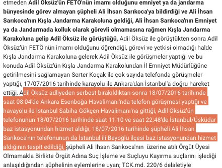 Ali Ihsan Sarıkoca, Adil Öksüz ile 1- jandarma karakolunda yüzyüze, (16/07) 2- Serbest kalınca havaalanında telefon (18/07) ile görüşmüş.pic.twitter.com/QrDVM6ihZ8