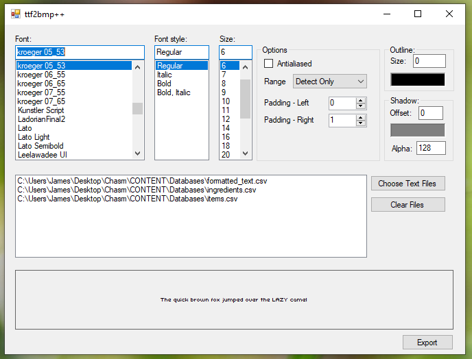 @AxiomVerge Thanks for publishing your work on ttf2bmp! I used the original for Chasm but tried to fit it all in just using a range haha.. It continues to grow!pic.twitter.com/F9KmekPpcn