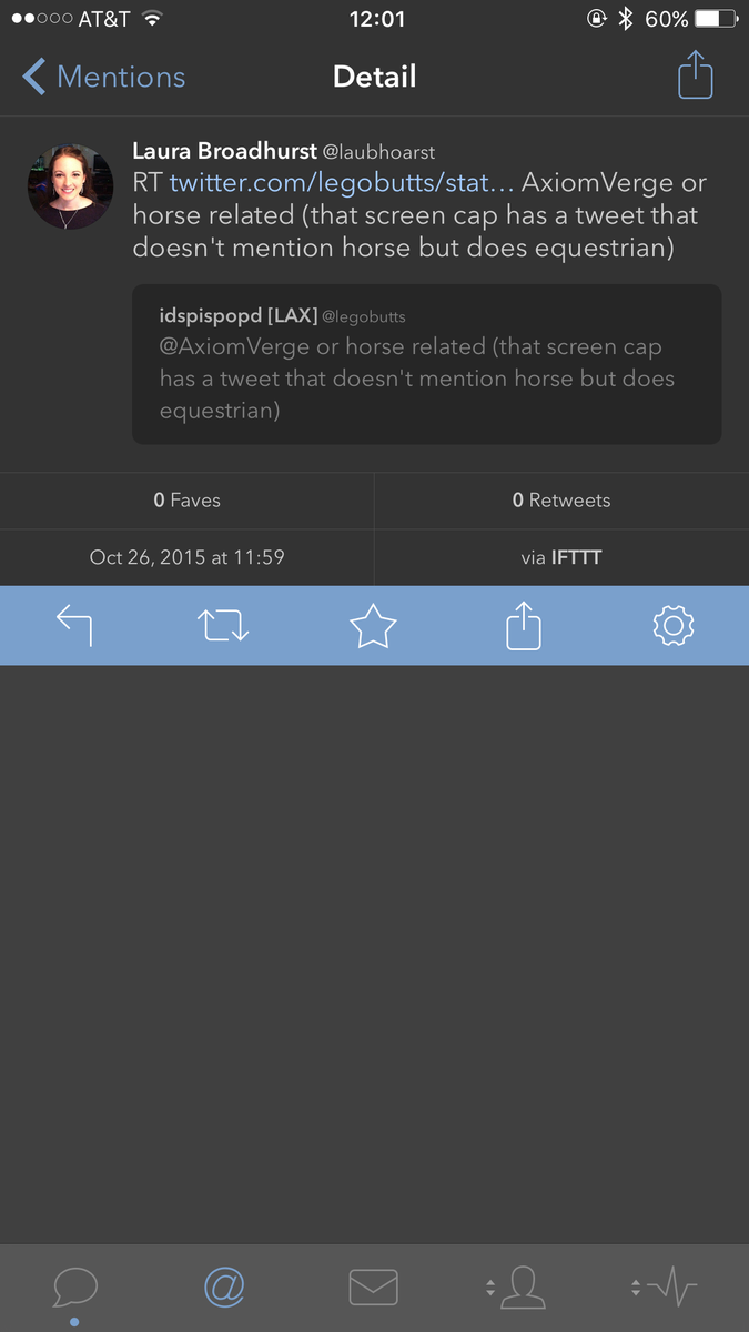 @AxiomVerge or horse related (that screen cap has a tweet that doesn't mention horse but does equestrian)