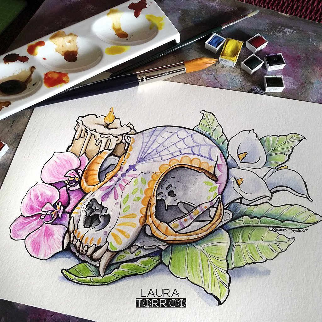 #Acuarela, lápices de colores y rotulador indeleble en papel Basik de 300g.#arte#ilustradora@Ayuda_artistapic.twitter.com/Rf0E3EDD9Q