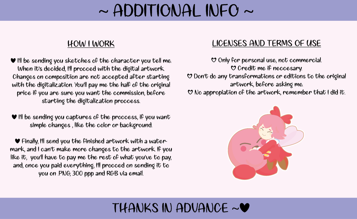 COMMISSIONS OPEN! / COMISIONES ABIERTAS! The first 2 people who commission me will get a 20% discount!!/Las 2 primeras personas que me comisionen obtendrán un 20% de descuento!! RTs are appreciated ~ / Los RTs son agradecidos ~