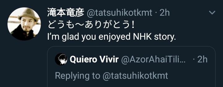 どうも〜ありがとう! I’m glad you enjoyed NHK story.https://twitter.com/azorahaitilidie/status/1222837872178483201 …