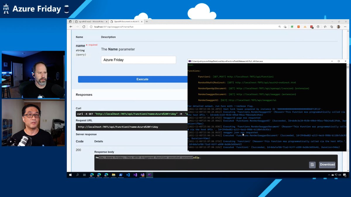 Enter the Azure Friday Quiz Sweepstakes! Watch & talk OpenAPI enabled with .NET in Visual Studio, take a quiz, and qualified participants are entered for a chance to win Microsoft swag! . T&Cs apply.