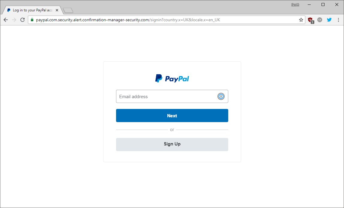 @PayPal phishing email this morning. Site looks genuine and they have paypal[.]com as a subdomain to be extra tricky.pic.twitter.com/4PMDngvaiz