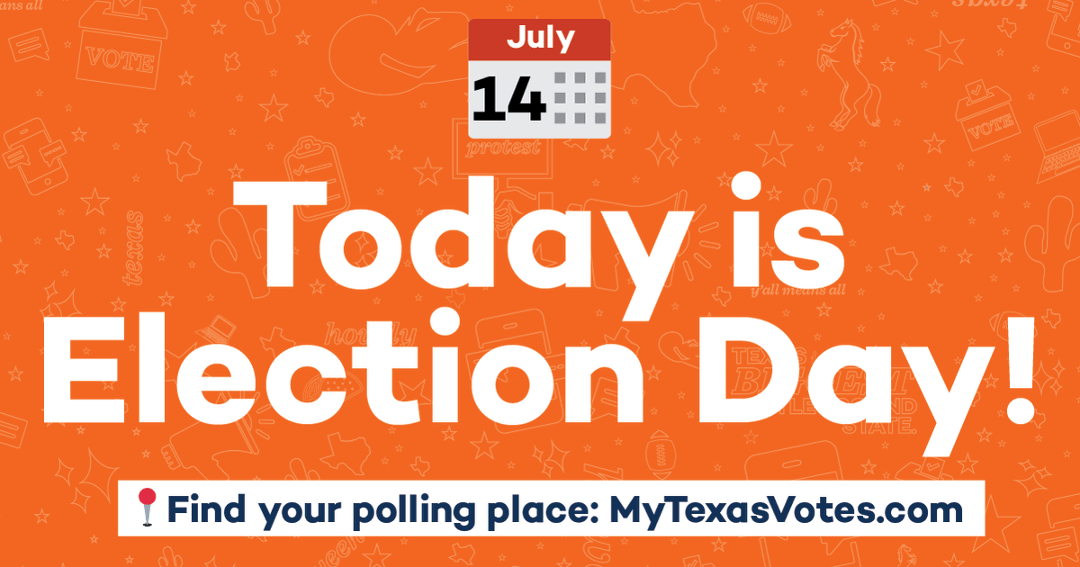 The polls are open now! You have until 7 PM to vote in the July 14 Primary Runoff and Special Election. Make your