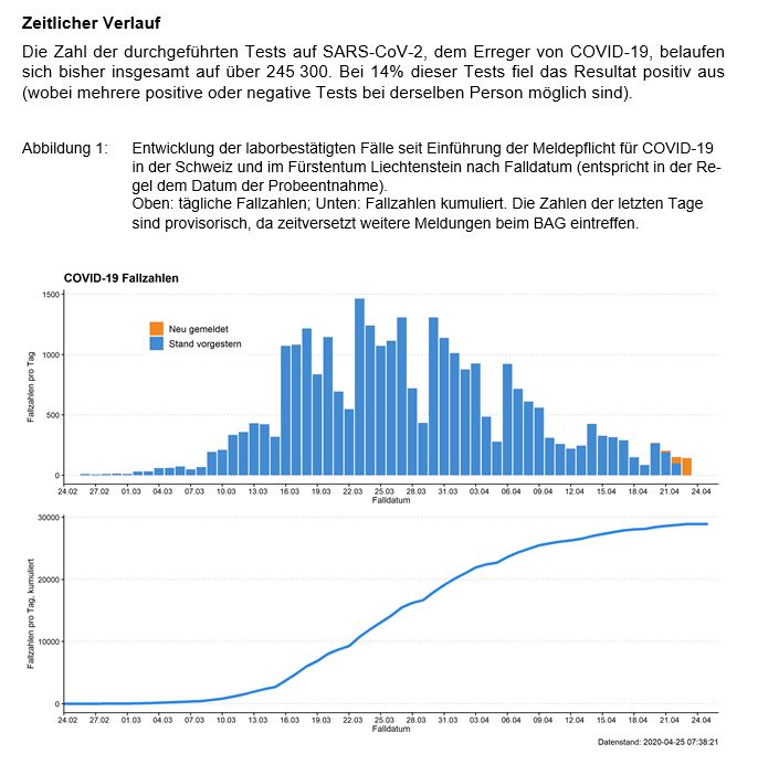 #CoronaInfoCH#Coronavirus#COVID19 25.04 Aktueller Stand sind 28'894 laborbestätigte Fälle, 217 mehr als am Vortag. http://bit.ly/2WgEETN pic.twitter.com/hAFAIgVR2K
