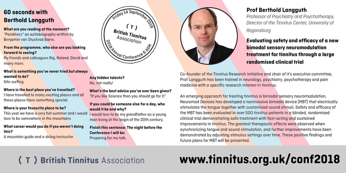 @TRI_TinnitusRes presenting the positive findings from a large-scale multi-centre randomised clinical trial evaluating@NeuromodDevices#tinnitus#treatment at the#BTA18 conference.@BritishTinnituspic.twitter.com/vrtmpOwQCU