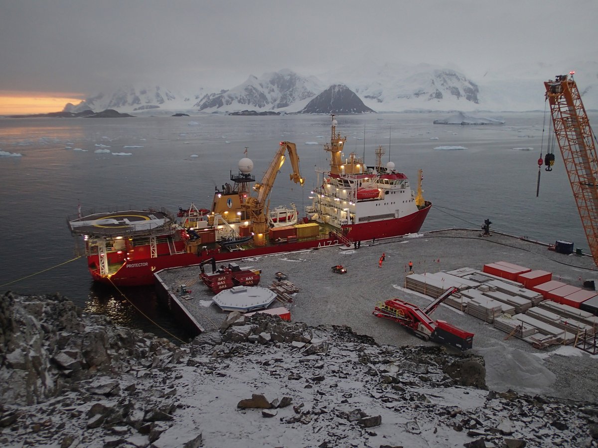 @RoyalNavy survey vessel@hmsprotector visited Rothera Research Station last week to offload stores and cargo ahead of the upcoming Antarctic winter, helping us continue our vital science research! Thanks for visiting