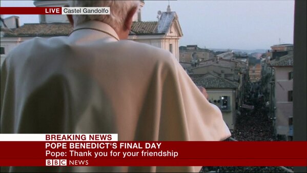 @BBCBreaking: "Thank you and good night" -#Pope's last public words from Castel Gandolfo near Rome" no swearing ?Thanks. Twitter will use this to make your timeline better. UndoUndo