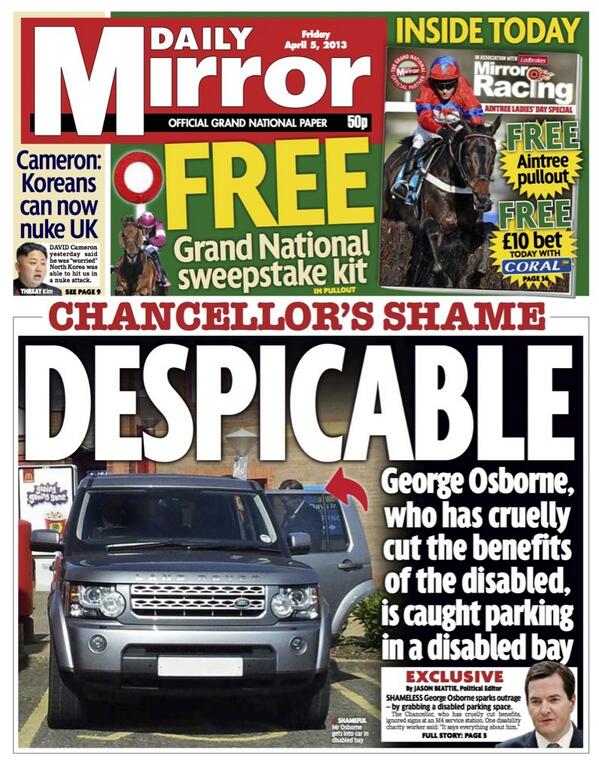 @BBCBreaking: George Osborne: Photo of vehicle which parked in disabled bay appears in@DailyMirror pic.twitter.com/gQS1sYfjlO < utter cunt