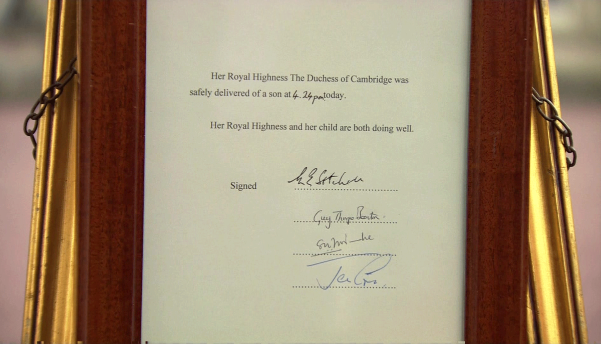 RT“@BBCBreaking: PICTURE: Official announcement of #RoyalBaby boy's birth displayed outside Buckingham Palace pic.twitter.com/OAwPqyMCXr”