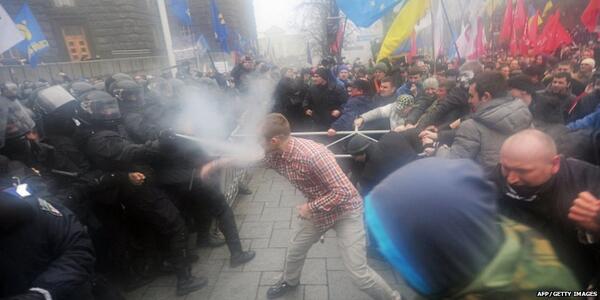 @BBCBreaking Clashes as 100,000+ protest in#Kiev, angry that Ukraine delayed deal with EU http://bbc.in/19TovAm & pic.twitter.com/7ysDVTncGu”