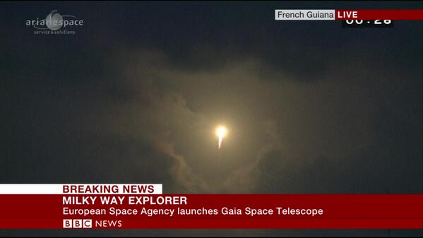 @BBCBreaking:@esa launches#Gaia satellite into orbit to map Milky Way http://bbc.in/1cSWEFC pic.twitter.com/izdYJQW7qH”
