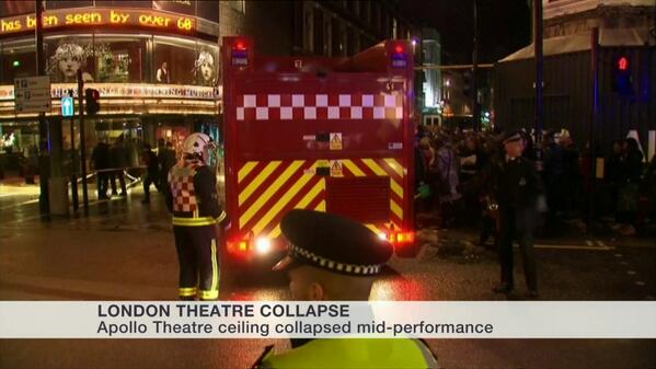 “@BBCBreaking: Scene at London's #ApolloTheatre after roof collapsed; Live updates http://bbc.in/1fqddIV pic.twitter.com/wypvlodVVa”
