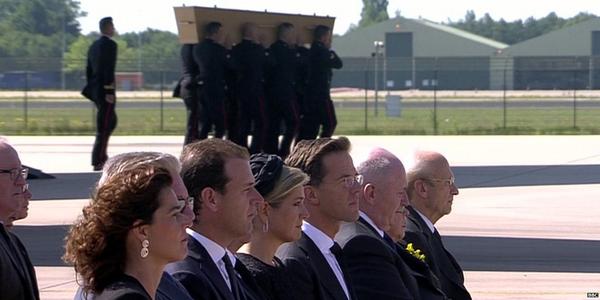 @BBCBreaking Dutch King, Queen & PM Mark Rutte wait to receive first coffins of victims from#MH17http://bbc.in/1nUfjSZ -