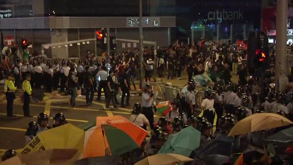 @BBCBreaking: Tense scene in#HongKong as scuffles break out between protesters & police http://bbc.in/1Dmdf0y pic.twitter.com/l3aczXOGto”