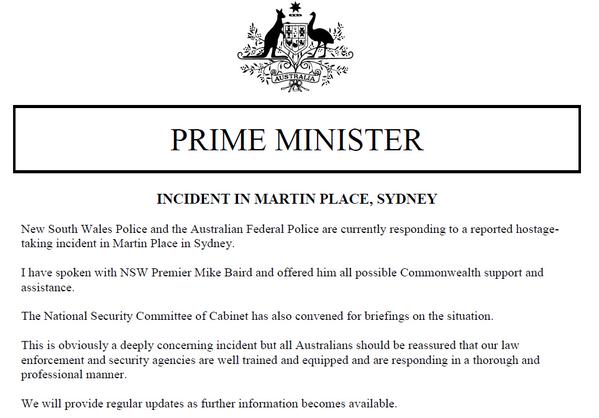 @BBCBreaking: Australia's PM Tony Abbott says#sydneyseige "deeply concerning" - Statement here: pic.twitter.com/5v070P0qNz"