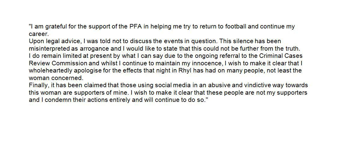 Convicted rapist Ched Evans issues statement in which he apologises "for the effects that night" had on many peoplehttp://bbc.in/1KoLwRl
