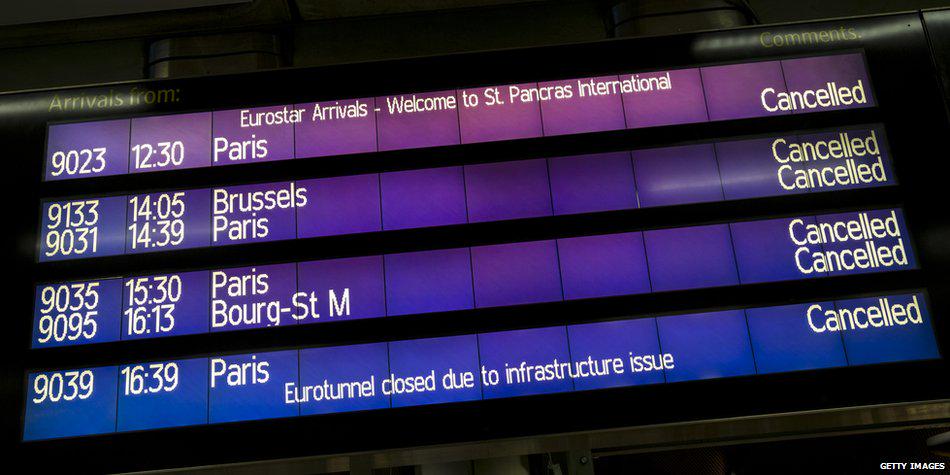 @BBCBreaking: 26#Eurostar trains cancelled after#ChannelTunnel shut - latest updates http://bbc.in/1CjMmsR pic.twitter.com/hMNC9BMU4K”