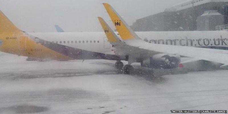 The scene at Manchester Airport as snow closes runway; all departures & arrivals suspended http://bbc.in/1uEktre pic.twitter.com/LK8mW2s49M