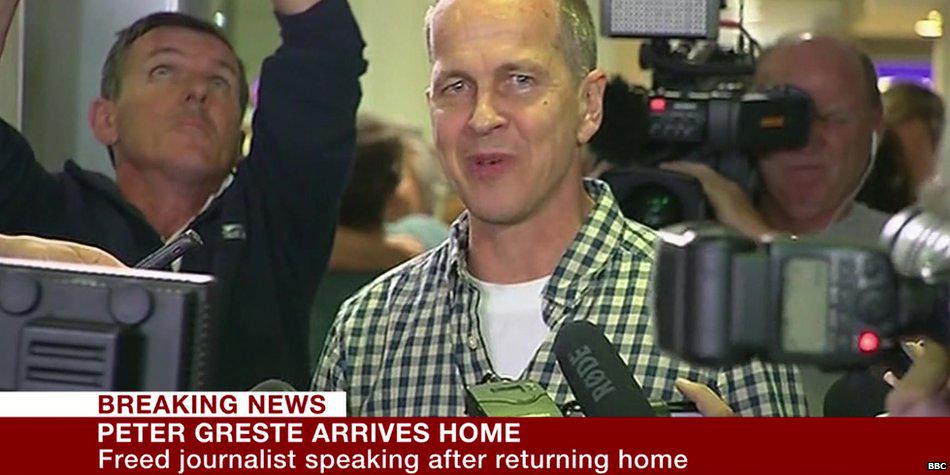 “@BBCBreaking: Journalist Peter Greste arrives back in Australia after release from Egyptian prison http://bbc.in/1z9HWkK ”