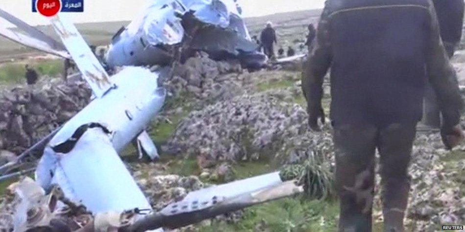 Pictures online appear to show Syrian helicopter after crash; 5 captured, 1 killed, 1 missing http://bbc.in/19IJePl pic.twitter.com/k1qWFj4iz0