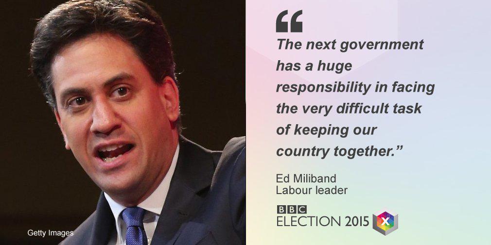 "Very disappointing & difficult night for Labour," leader Ed Miliband says http://bbc.co.uk/electionlive #GE2015pic.twitter.com/JuZ0GAHGW1