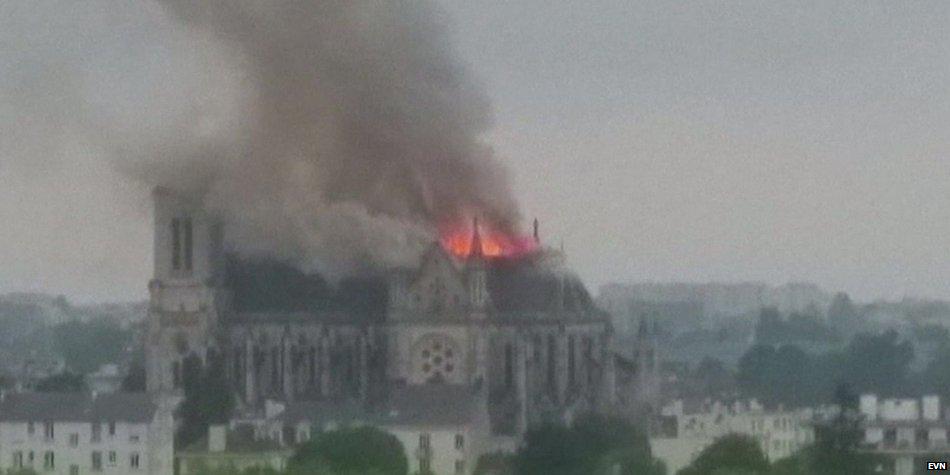 Pictures show fire engulfing roof of #Nantes #SaintDonatien basilica http://bbc.in/1MVPvFg pic.twitter.com/NNpEtlvjQm