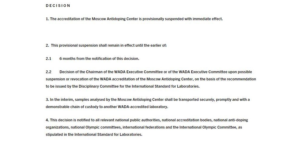 .@wada_ama statement announcing suspension of accreditation for Moscow's anti-doping lab http://bbc.in/1OBtqzT pic.twitter.com/KqLnsW2lhD