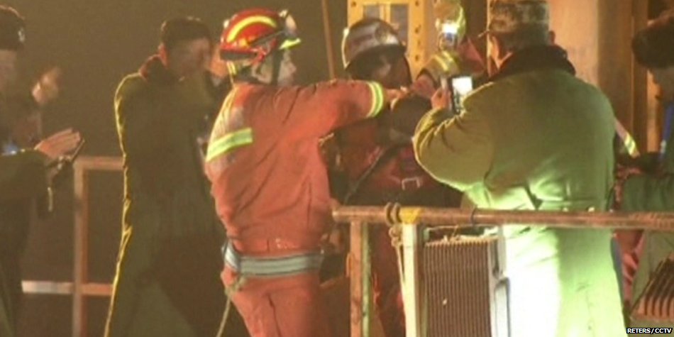 Pictures show Chinese miners rescued 36 days after Shandong mine collapse http://bbc.in/1PmZ0R0 pic.twitter.com/smcTMsEmPM