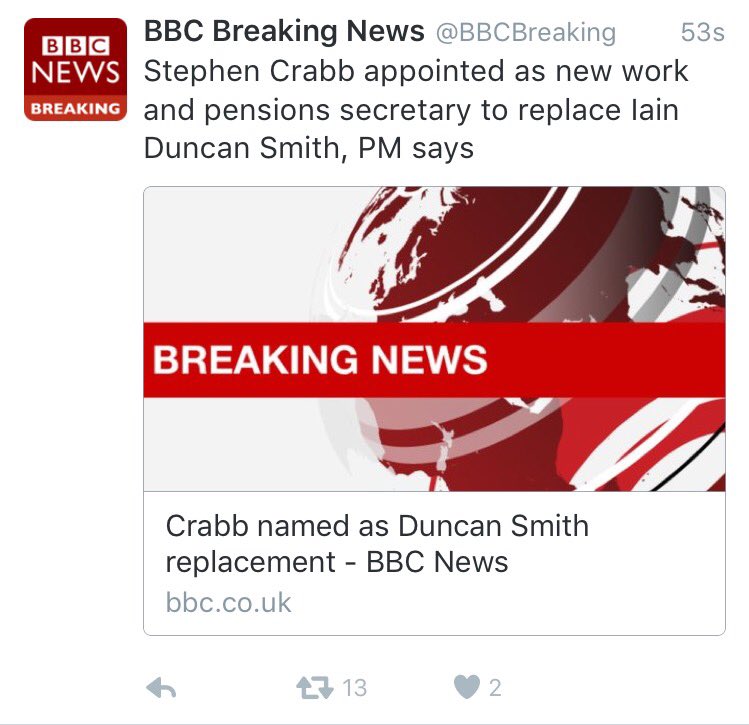 @BBCBreaking@BBCNews is this a sideways move for Mr Crabbe?Thanks. Twitter will use this to make your timeline better. UndoUndo