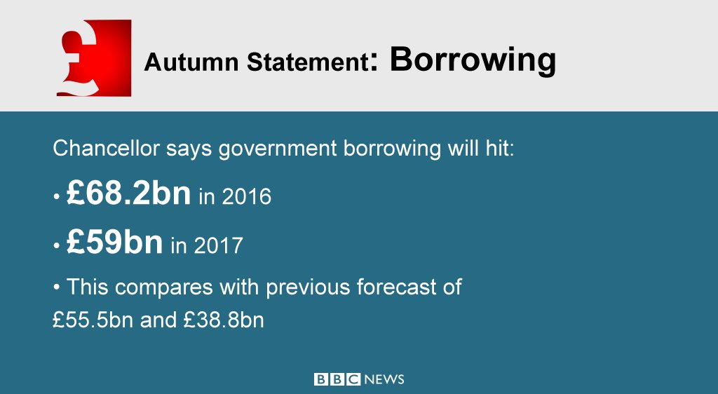 UK government plans to borrow more than previously forecast - Philip Hammond says in #AutumnStatement http://bbc.in/2f6gUgE pic.twitter.com/2M19EEt8gH