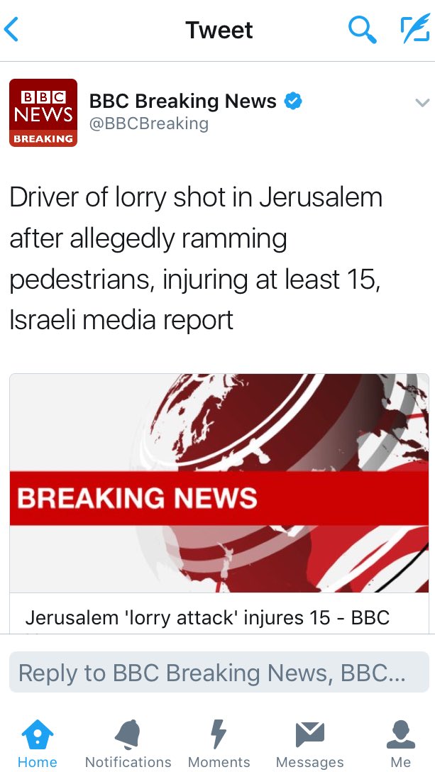 #Jerusalem lorry ramming attack, police say: 3 women and 1 man. 15 injured sent to hospitalhttp://bbc.in/2i6zoOj -