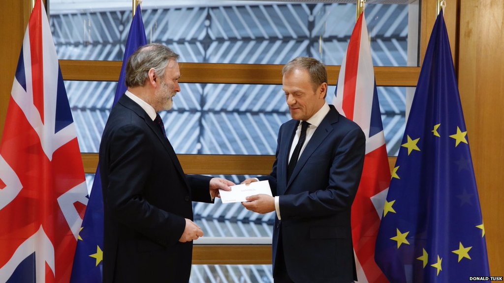 Picture shows letter triggering Article 50 delivered to @eucopresident.