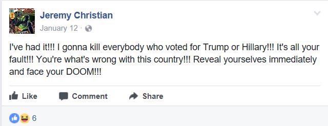 Jeremy Christian is a white supremacist terrorist they should be banned along with ISIS sympathisers