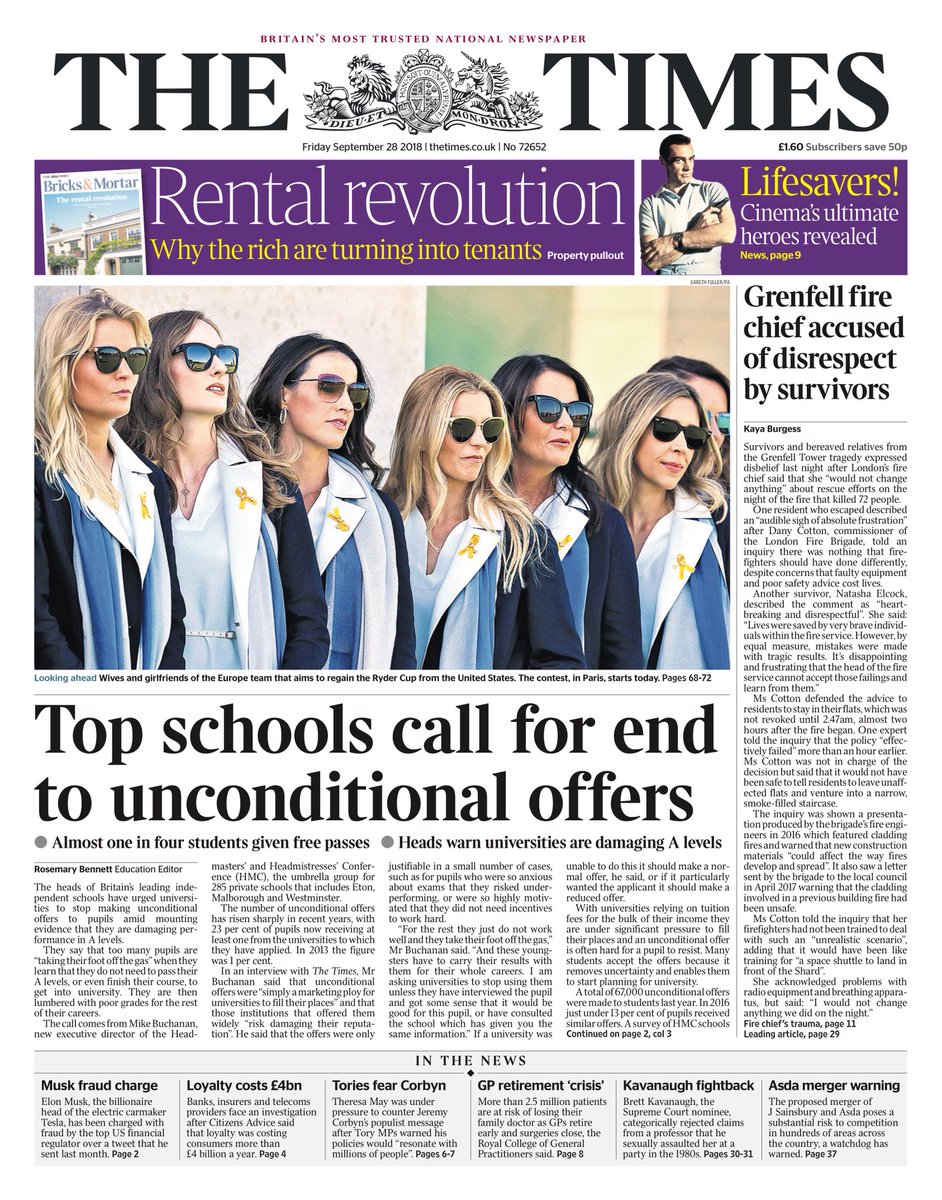 Friday's Times: "Top schools call for end to unconditional offers" #tomorrowspaperstoday #bbcpapers (via @BBCHelenaLee)pic.twitter.com/ADBYLlx5r7