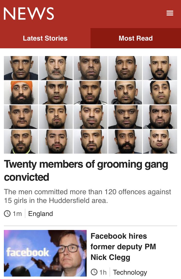 Just listened to the 3.30pm news on radio1. Not one mention of who the perpetrators were. Censorship on Muslim grooming gangs by the BBC is a crime that will be discussed in classrooms of the future. Shamefull.