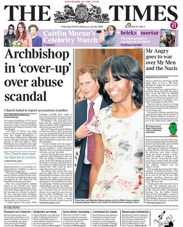 @BBCNews: Times: Archbishop in 'cover-up' over abuse scandal pic.twitter.com/qnD9CHppIb” Who would've thought it? Everyone.