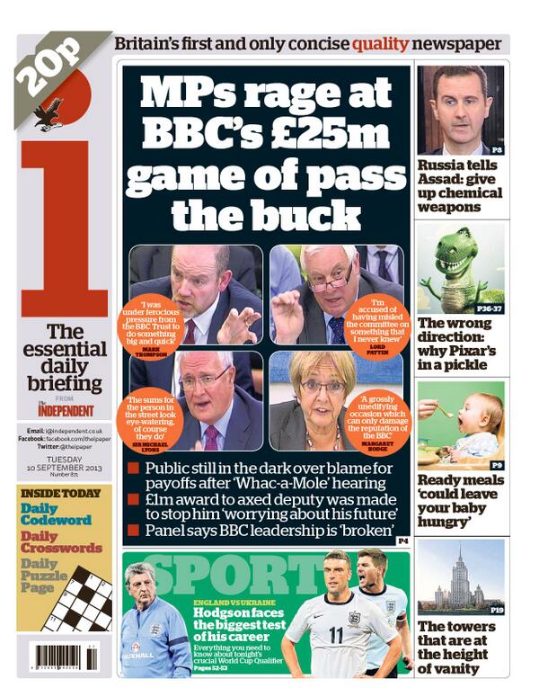 Tuesday's i: "MPs rage at BBC's £25m game of pass the buck" pic.twitter.com/IJCCjwWF9v - via @suttonnick #TomorrowsPapersToday #BBCPapers