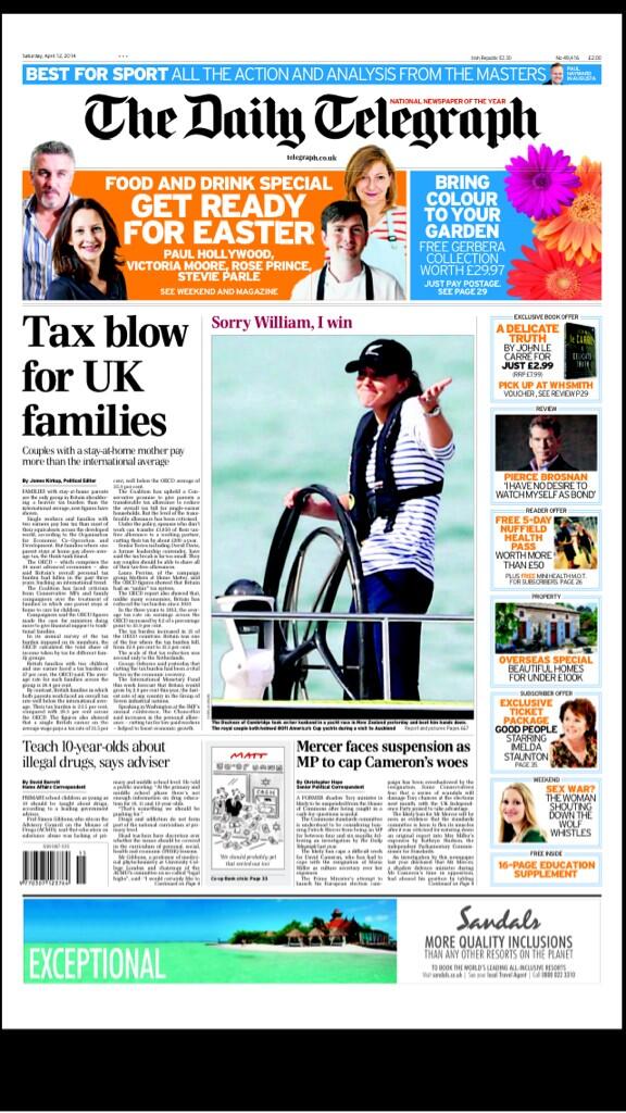 “@BBCNews: Saturday's @Telegraph : "Tax blow for UK families" pic.twitter.com/2dTnF5xF3V - via @hendopolis #tomorrowspaperstoday #BBCPapers”