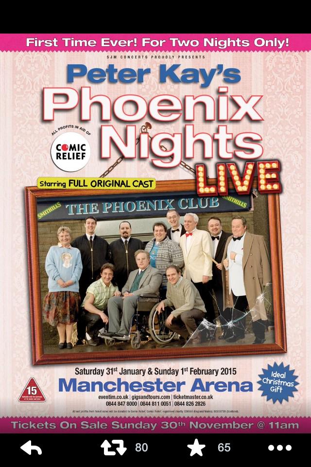 @BBCNews Peter Kay to bring back#PhoenixNights for two live shows in aid of@comicrelief http://bbc.in/1zzztJJ@Smartle@bakerssssssThanks. Twitter will use this to make your timeline better. UndoUndo